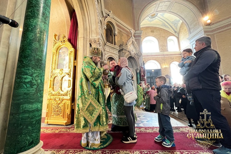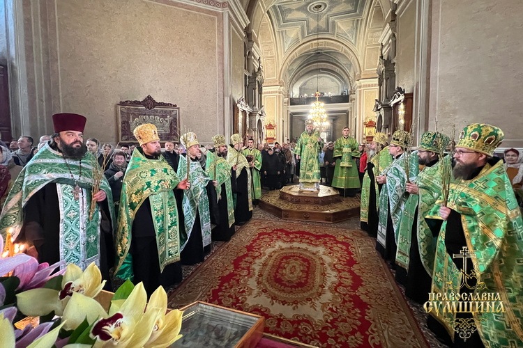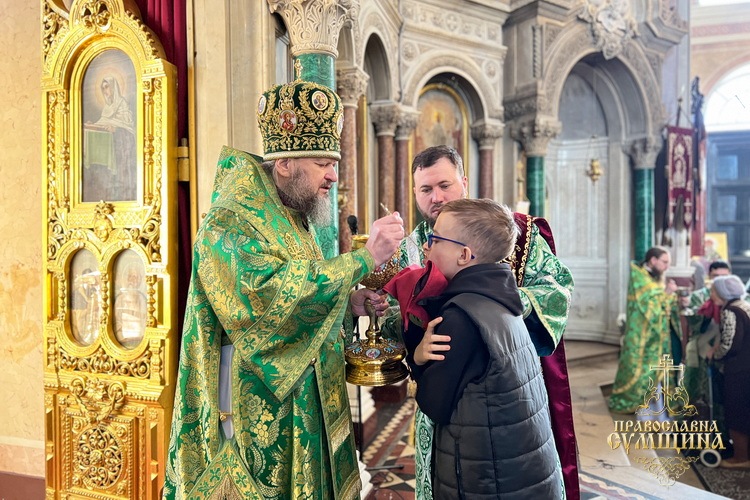 5 квітня 2026 року, на свято Входу Господнього до Єрусалима, Високопреосвященніший митрополит Сумський і Охтирський Євлогій очолив святкову Божественну літургію у Спасо-Преображенському кафедральному соборі Сум.