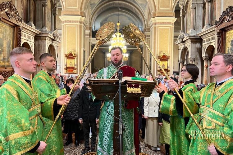 Проповідь у неділю була присвячена поясненню свята Входу Господнього до Єрусалима та євангельських подій Страсної Седмиці, що починається згодом.