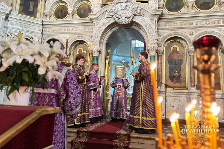 29 березня 2026 року, в Неділю 5-ту Великого посту, коли Церква вшановує преподобну Марію Єгипетську, у Спасо-Преображенському кафедральному соборі м. Суми відбулися святкові богослужіння. Божественну літургію очолив Високопреосвященніший митрополит Сумський і Охтирський Євлогій у співслужінні духовенства собору. Напередодні ввечері владика звершив всенічне бдіння в соборі.