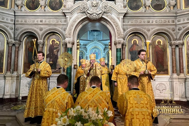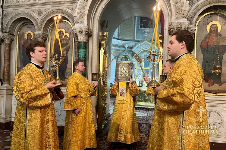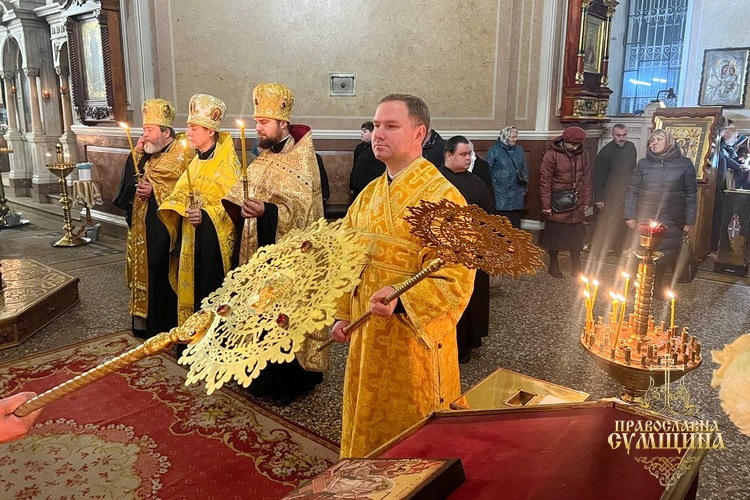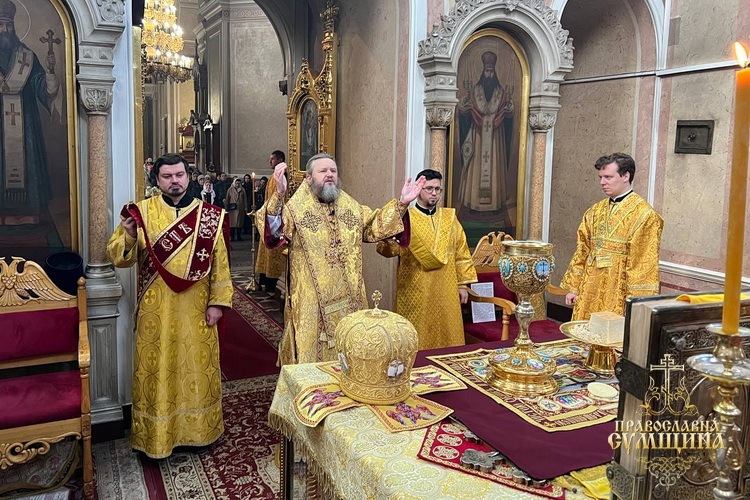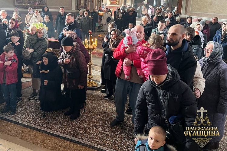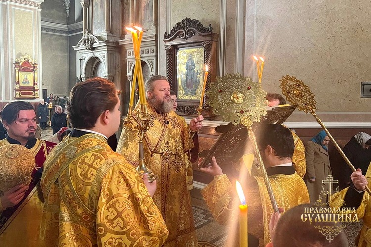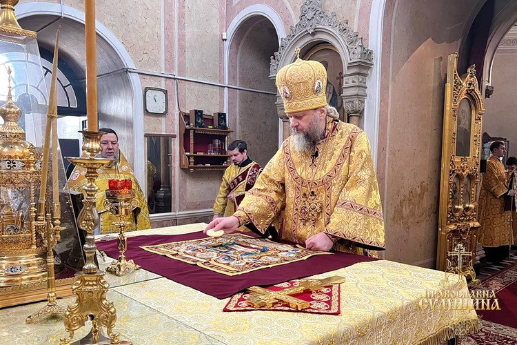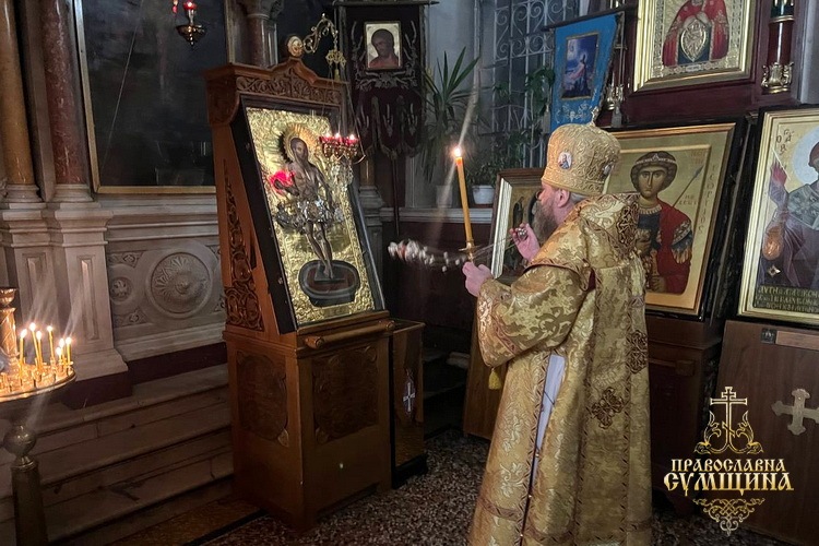 Наприкінці літургії духовенство та віряни молитовно вшанували Корсунську-Шпилівську ікону Божої Матері. Митрополит Євлогій прочитав Сумську молитву до Пресвятої Богородиці про Її заступництво під час війни.