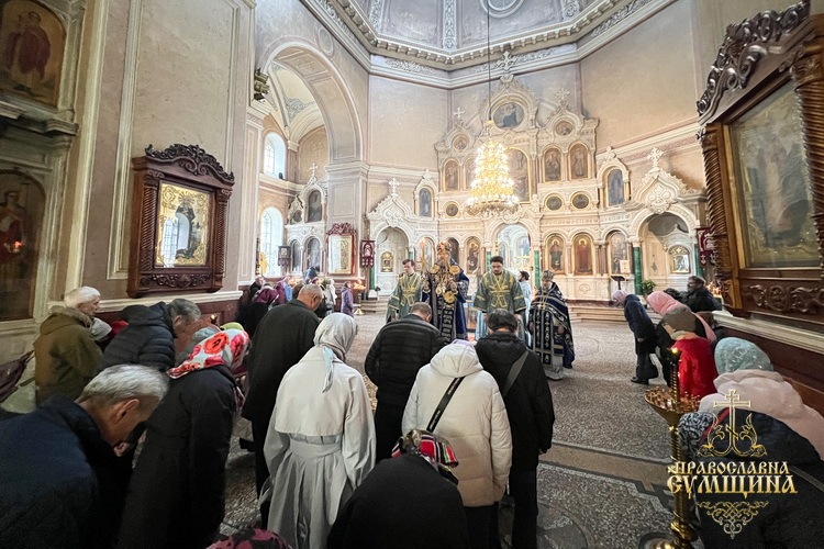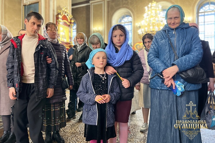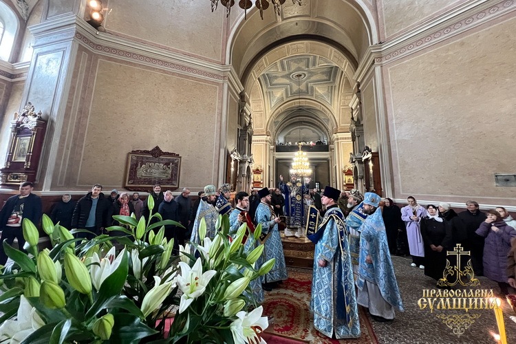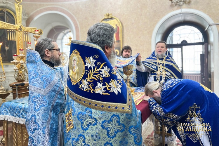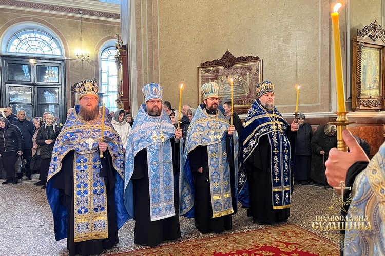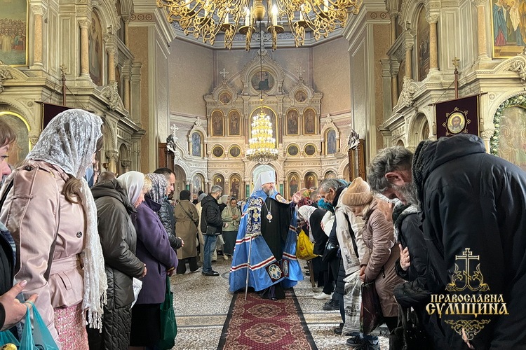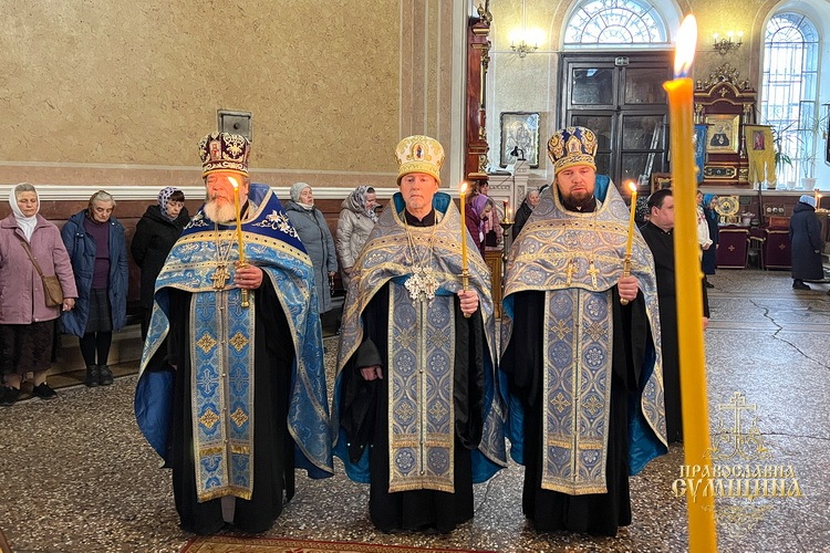 На завершення богослужіння було звершено славлення перед іконою Благовіщення Пресвятої Богородиці, прочитано Сумську молитву до Божої Матері під час війни та урочисто проспівано величання свята.