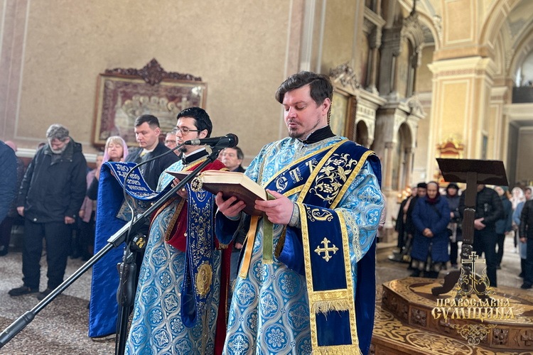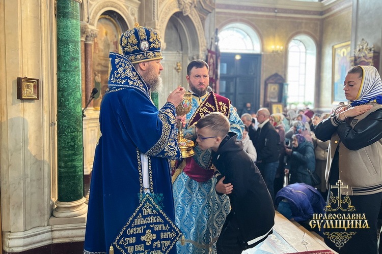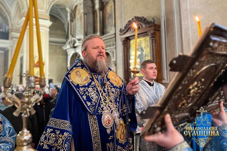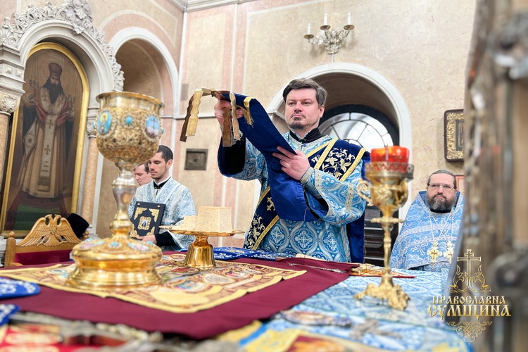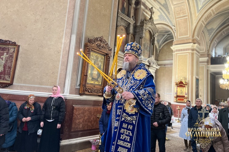 7 квітня 2026 року, у Великий Вівторок Страсної седмиці та у світлий день свята Благовіщення Пресвятої Владичиці нашої Богородиці і Приснодіви Марії, Високопреосвященніший митрополит Сумський і Охтирський Євлогій очолив урочисті богослужіння у Спасо-Преображенському кафедральному соборі міста Суми.