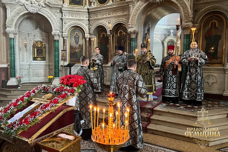 По завершенні богослужіння православні сумчани вклонилися Хресту Господньому, який напередодні було урочисто винесено на центральний аналой в соборі, віддаючи шану страсному подвигу Господа. Читання євангельських глав, проникливі молитви та покаянні піснеспіви допомогли присутнім глибше усвідомити значення страждань Христа та зосередитися на власному духовному вдосконаленні.