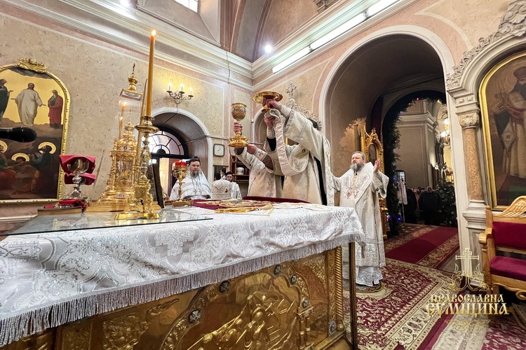 Напередодні свята в соборі було звершено всенічне бдіння, під час якого архіпастир прочитав канони свята Богоявлення. У сам день торжества в кафедральному храмі відслужили дві Божественні літургії за чином святителя Василія Великого. Ранню літургію очолив митрополит Євлогій, звернувшись до вірян із проповіддю про догматичне значення Хрещення Господнього — явлення Пресвятої Тройці та відкриття для людської природи шляху до спасіння й вічного життя.