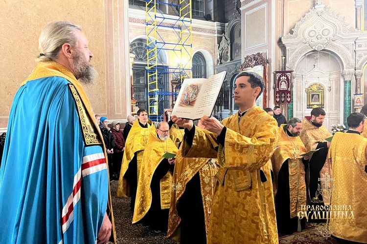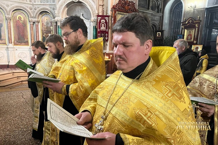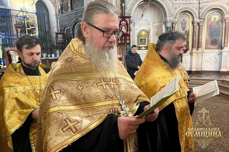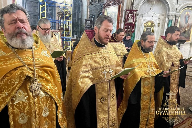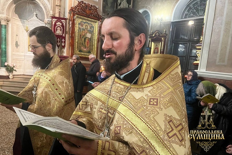 Після акафісту проповідь виголосив клірик Троїцького архієрейського собору м. Суми протоієрей Максим Карпенко.