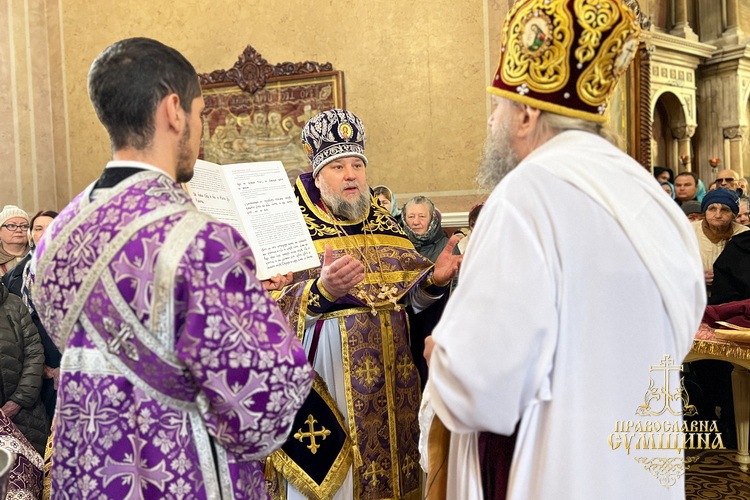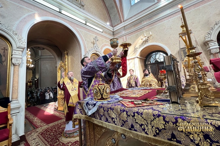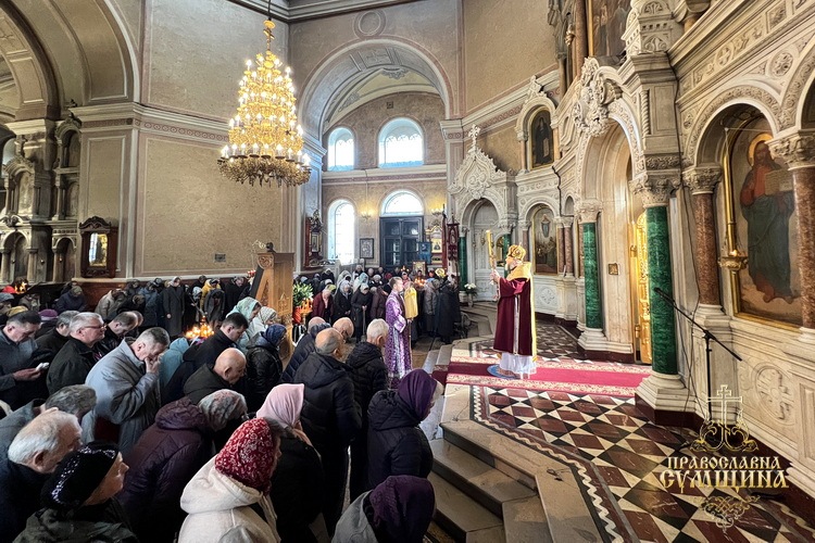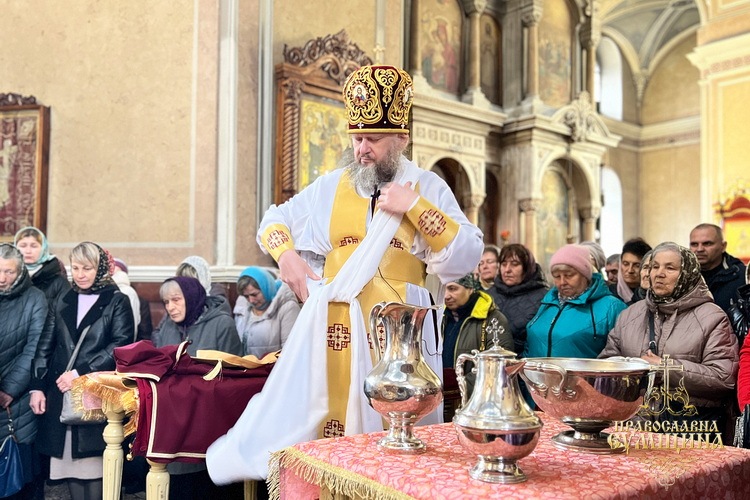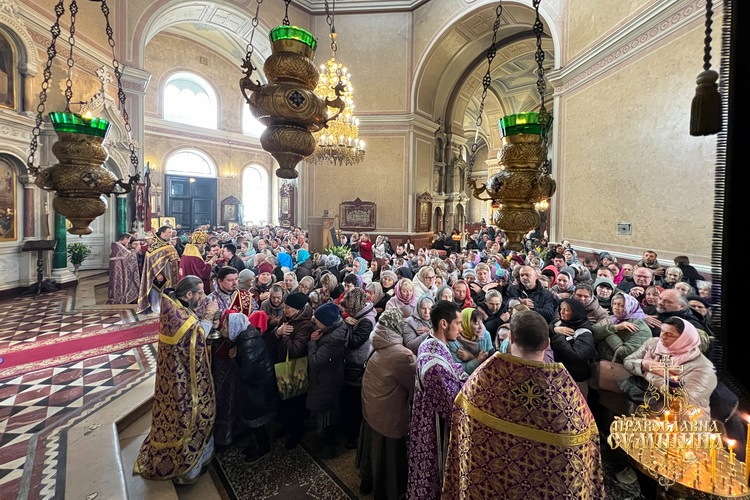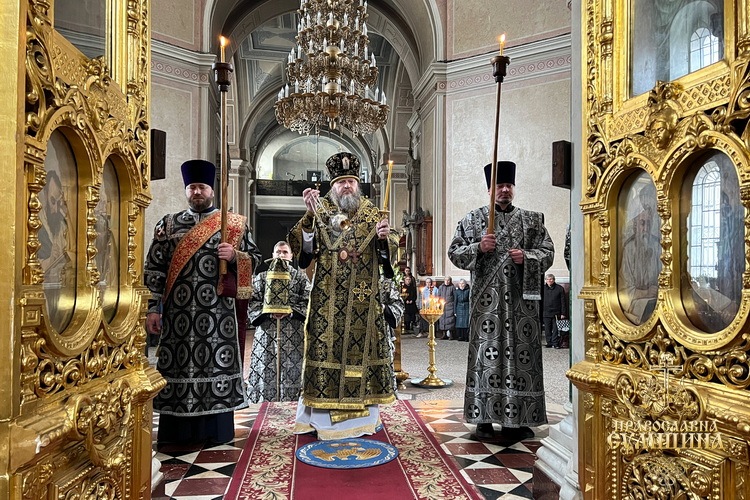 Напередодні ввечері владика молився у вівтарі собору, читав трипіснець на малому повечір’ї та Святе Євангеліє на утрені. Вранці архіпастир очолив Божественну літургію святителя Василія Великого, за якою, за усталеною традицією, численні віряни, що молилися у храмі, приступили до Причастя Святих Христових Таїн.
