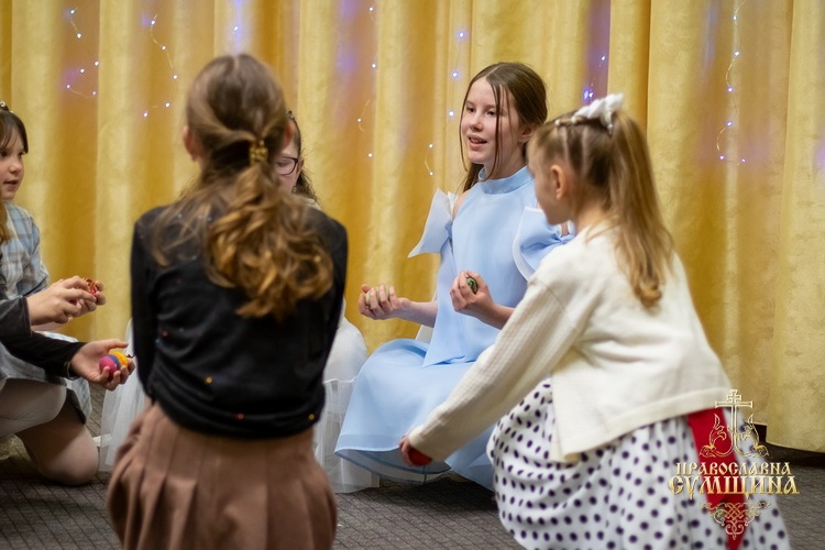 Свято розпочалося спільним співом тропаря Пасхи «Христос воскресе із мертвих», після чого із вітальним словом до присутніх звернувся керівник недільної школи протоієрей Сергій Луцкін. Центральним елементом програми стала зворушлива театральна постановка «Дорогою до гроба», яка розкрила подвиг святих жон-мироносиць — їхню мужність, відданість Спасителю та незгасиму надію, що веде до радості Воскресіння. Варто відзначити, що сценарій вистави був написаний талановитими юними сценаристами самої ж недільної школи.