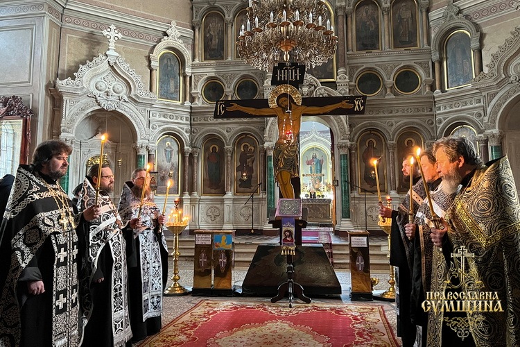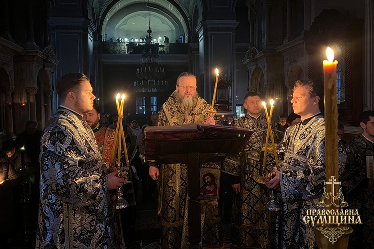 Очолив служіння Пасії Високопреосвященніший Євлогій, митрополит Сумський і Охтирський. Владиці співслужили клірики кафедрального собору.