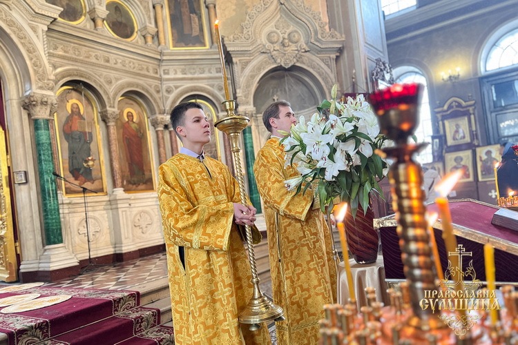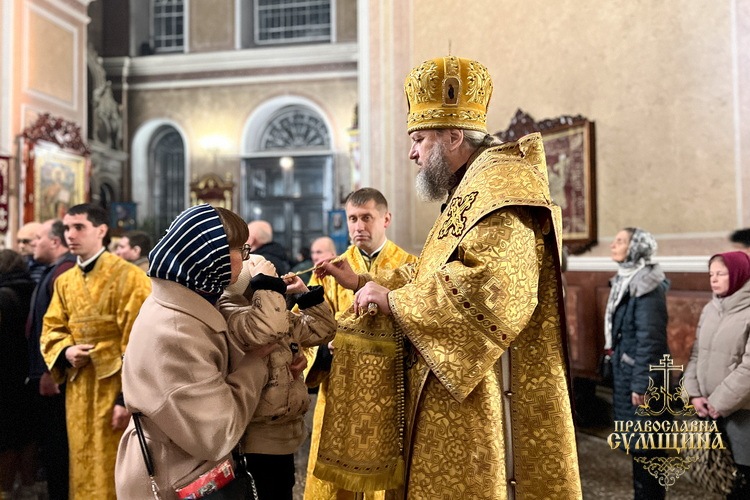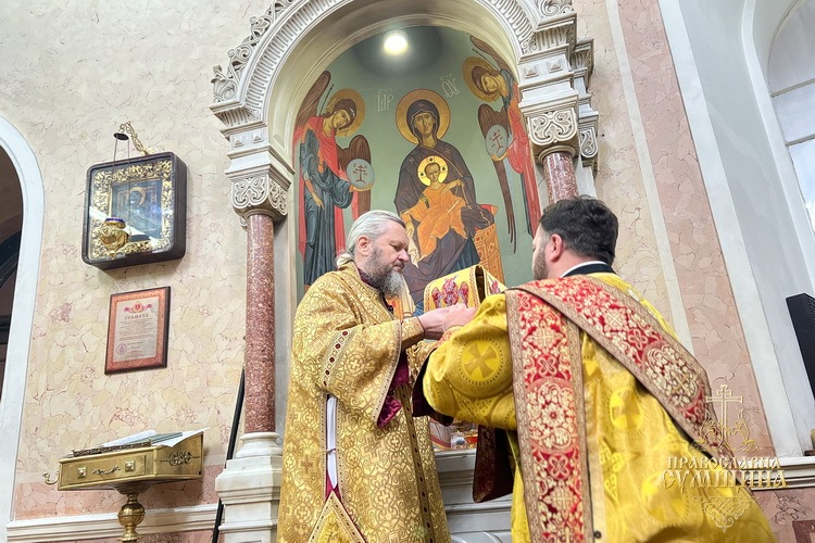 По завершенні Літургії у храмі відбувся короткий молебний спів перед шанованим образом Божої Матері Корсунським-Шпилівським. Перед Її іконою була піднесена Сумська молитва до Пресвятої Богородиці у час війни.
