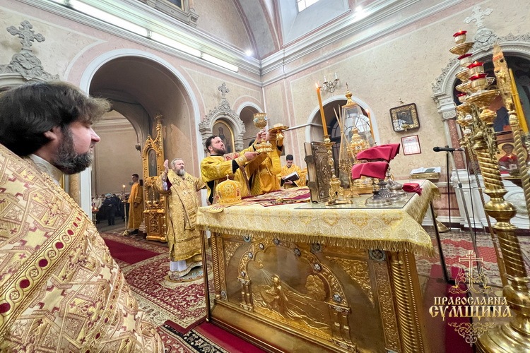 2 листопада 2025 року, у Неділю 21-шу після П’ятидесятниці та день пам’яті святого великомученика Артемія, Високопреосвященніший митрополит Сумський і Охтирський Євлогій звершив Божественну літургію у Спасо-Преображенському кафедральному соборі м. Суми. Напередодні архіпастир відслужив всенічне бдіння. Його Високопреосвященству співслужили клірики кафедрального собору.