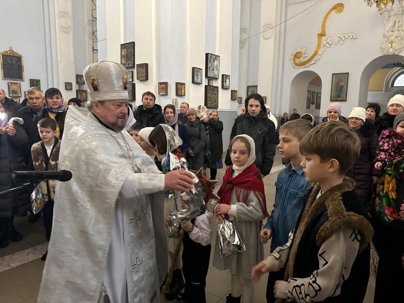 Напередодні, у день свята Різдва Христового, в храмах Охтирського благочиння діти привітали парафіян різдвяними колядками, розділивши з усіма радість великої події Боговтілення та наповнивши святкові дні особливою теплотою і духовною втіхою.
