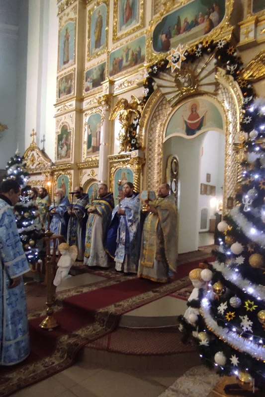Під час богослужіння отець Євгеній передав духовенству та вірянам щирі вітання Високопреосвященнішого митрополита Євлогія зі святом народження Господа і Спасителя нашого Іісуса Христа, побажавши Христового миру в серцях людей та благословенного і справедливого миру для України.