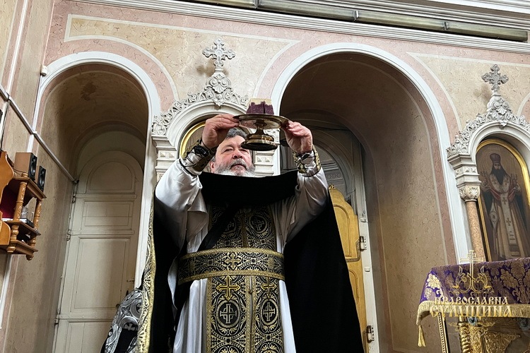 З понеділка по п’ятницю вранці митрополит Євлогій молився у вівтарі за ранковими молитвами, полунощницею, утренею, великопісними часами, зображальними та вечірньою.