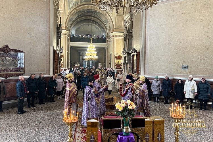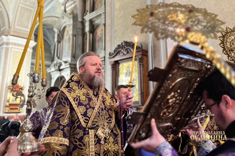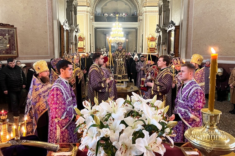 8 березня 2026 року, в Неділю 2-гу Великого посту, коли Церква вшановує святителя Григорія Паламу та Собор преподобних отців Києво-Печерських, у Спасо-Преображенському кафедральному соборі м. Суми відбулися святкові богослужіння. Всенічне бдіння і Божественну літургію очолив Високопреосвященніший митрополит Сумський і Охтирський Євлогій у співслужінні духовенства собору.