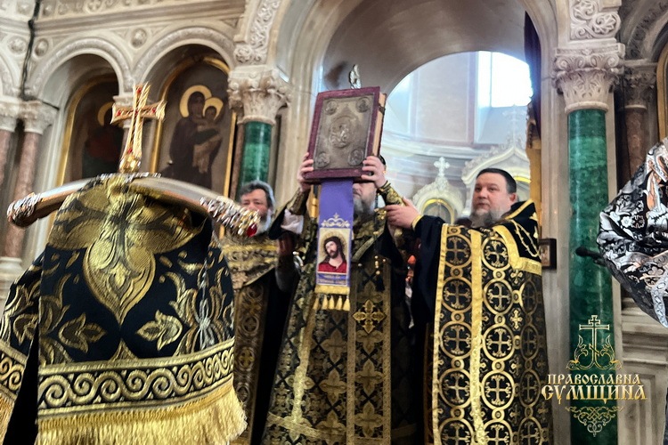 По завершенні богослужіння православні сумчани вклонилися святому Розп’яттю, віддаючи шану хресному подвигу Господа.