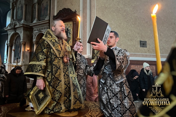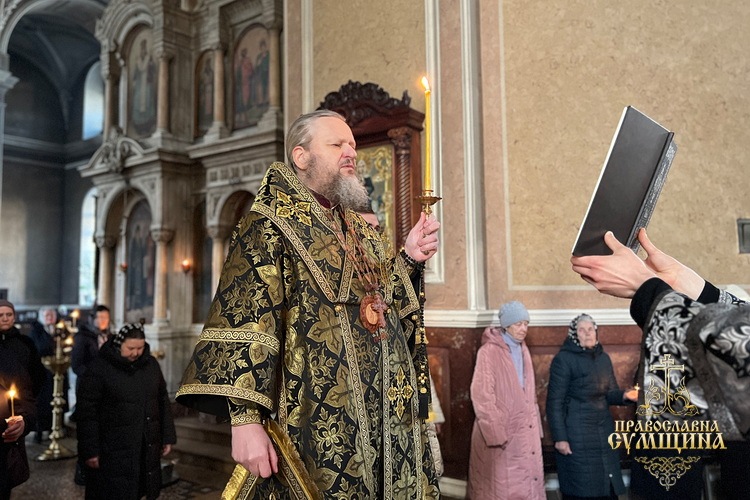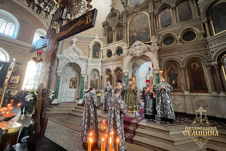 Богослужіння очолив Високопреосвященніший митрополит Сумський і Охтирський Євлогій у співслужінні кліриків кафедрального собору.