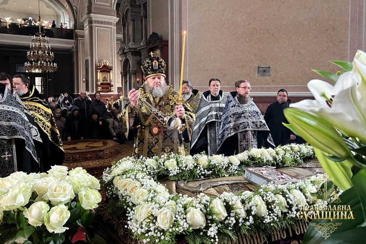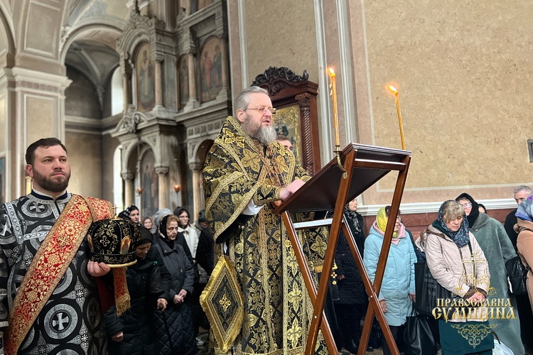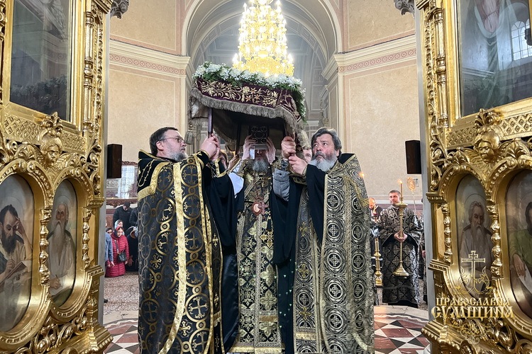Перед Святою Плащаницею владика Євлогій виголосив проповідь, присвячену Страстям Христовим, Хресту та Животворящій Смерті Господа Іісуса Христа.