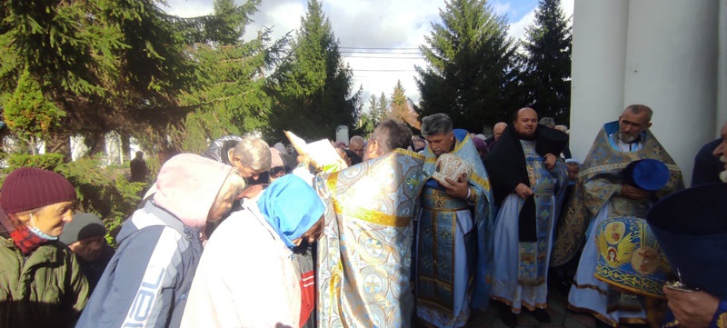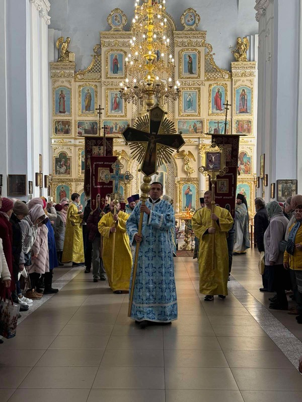 Після завершення літургії відбувся хресний хід навколо храму, під час якого було проспівано уставні многоліття. У своєму вітальному слові протоієрей Євгеній Сопіга передав поздоровлення від митрополита Євлогія, закликав до посиленої молитви за Українську Православну Церкву, яка нині переживає непрості й доленосні часи, а також за воїнів, що зі зброєю в руках захищають мирне життя народу.