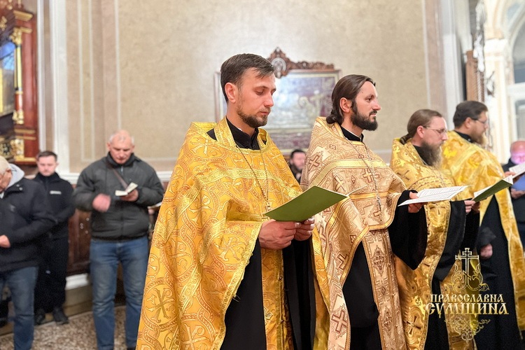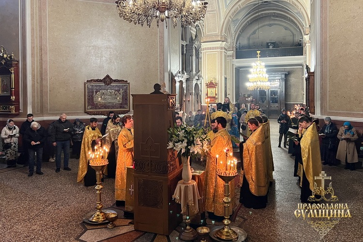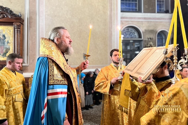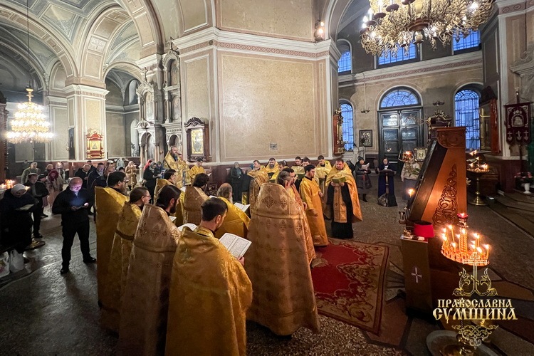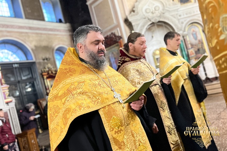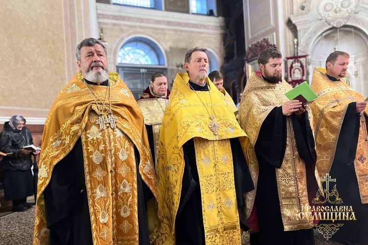 26 жовтня 2025 року, у недільний вечір, у Спасо-Преображенському кафедральному соборі м. Суми відбувся молебний спів з акафістом Господу Іісусу Христу Сладчайшому. Богослужіння очолив Високопреосвященніший митрополит Сумський і Охтирський Євлогій у співслужінні духовенства обласного центру.