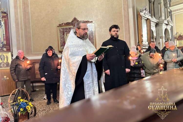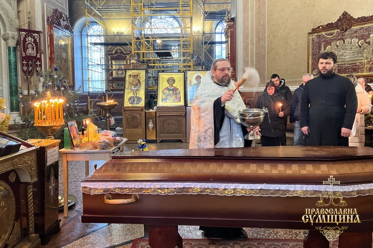 8 січня 2026 року у Спасо-Преображенському кафедральному соборі м. Суми відбулося відспівування українського захисника – воїна Олексія Василюка, прихожанина Спасо-Преображенського кафедрального собору м. Суми, який загинув на Донецькому напрямку ще у 2024 році під час виконання бойового завдання. З благословення Високопреосвященнішого Євлогія, митрополита Сумського і Охтирського, чин відспівування очолив клірик собору протоієрей Георгій Бавикін у співслужінні священників Сумської єпархії.