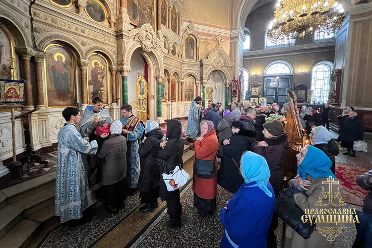 Святкову Божественну літургію (напередодні – всенічне бдіння) очолив митрополит Сумський і Охтирський Євлогій у співслужінні духовенства Сумської єпархії. Після читання Євангелія архіпастир звернувся до богомольців зі словом проповіді та пастирською настановою.