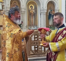 З благословення Високопреосвященнішого митрополита Сумського і Охтирського Євлогія Божественну літургію очолив клірик Спасо-Преображенського кафедрального собору м. Суми протоієрей Георгій Бавикін у співслужінні настоятеля храму та кліриків Сумської єпархії.