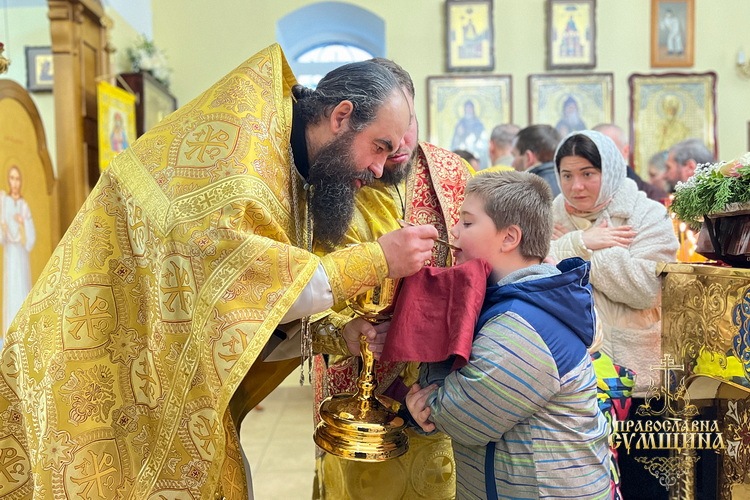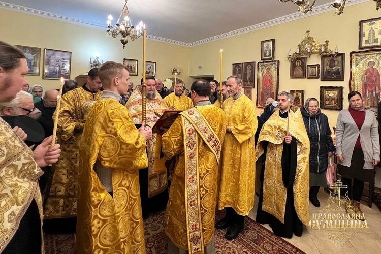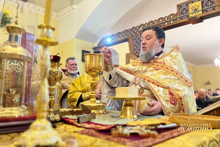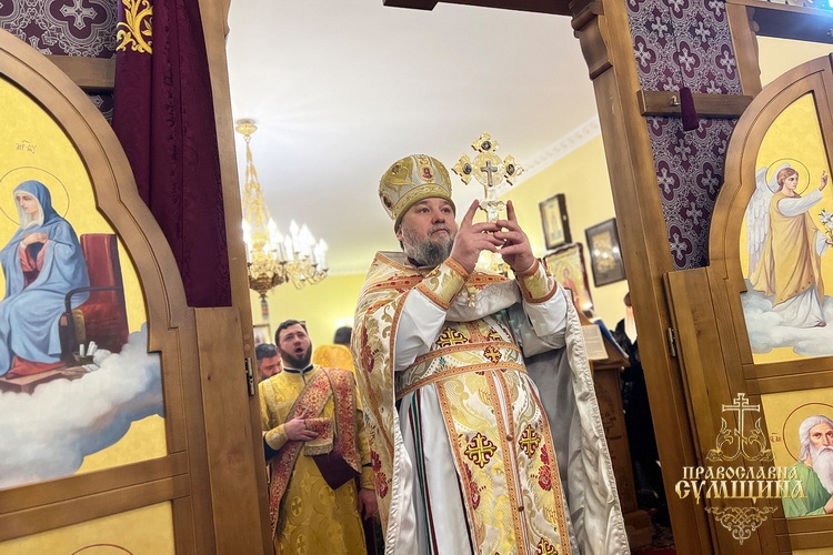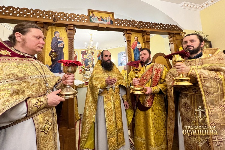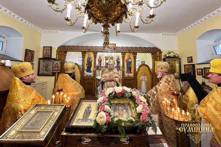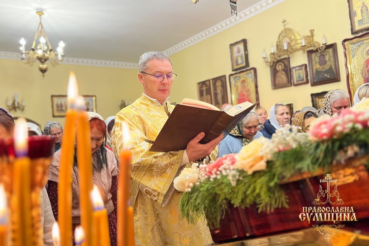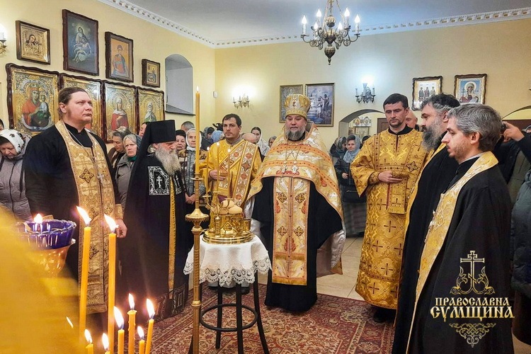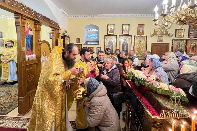Вранці 23 грудня було звершено водосвятний молебень з читанням акафісту храмовому святому та Божественна літургія, котру очолив протоієрей Миколай Смакоуз. Настоятелю співслужили клірики Сумської єпархії. На сугубій єктенії були піднесені прохання про мир в Українській державі, за воїнів та постраждалих через військові дії, за вимушених переселенців.