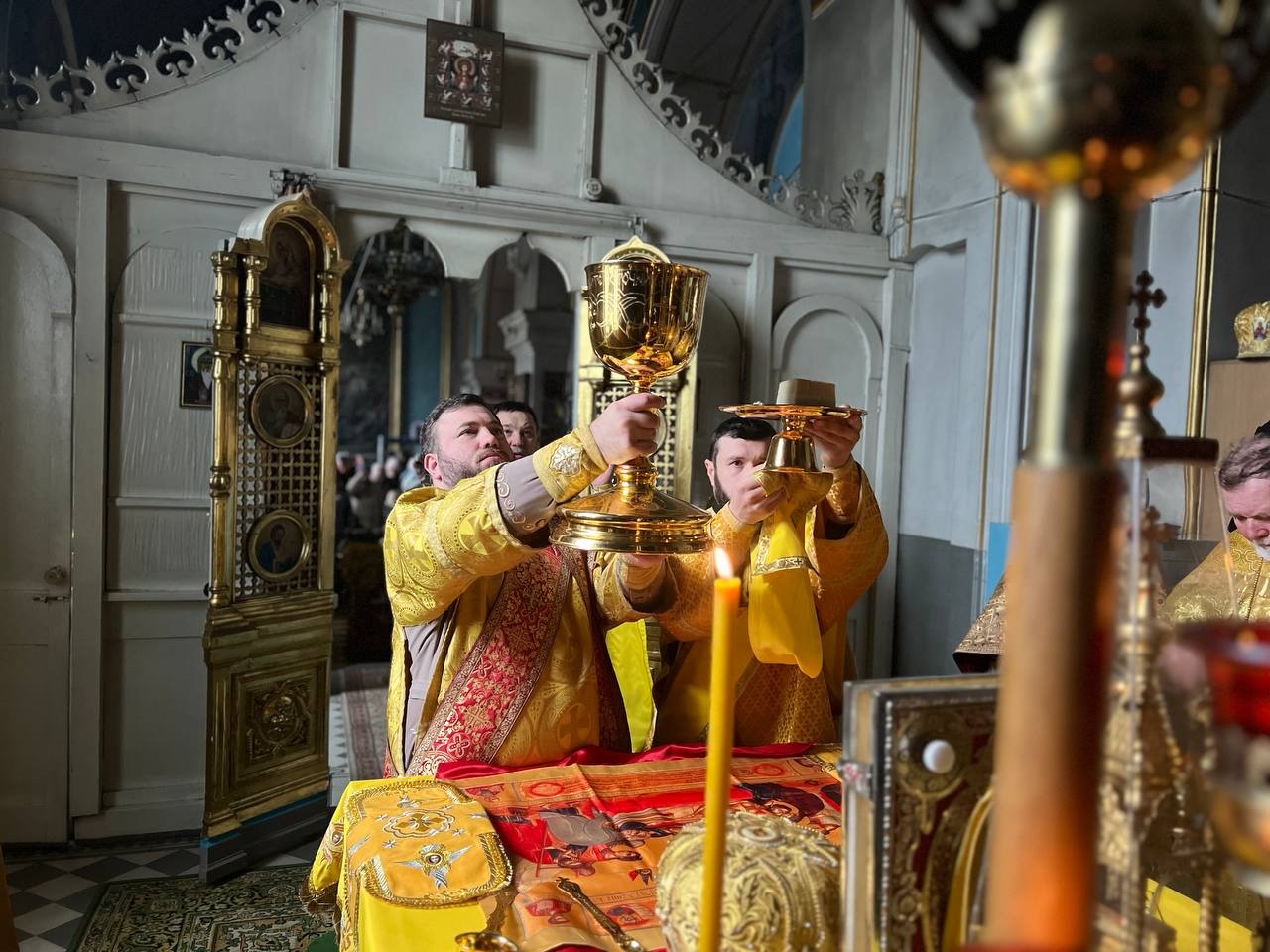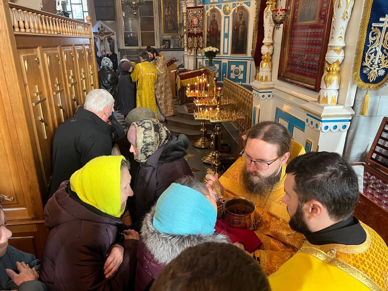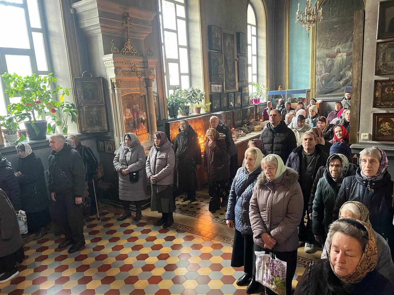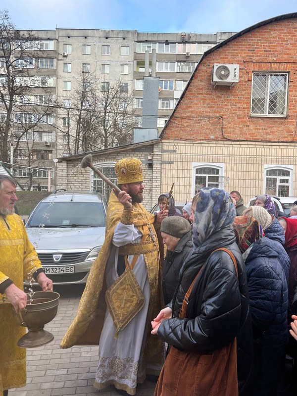 Під час Літургії підносилися особливі молитви за мир в Україні, за вимушених переселенців, біженців та всіх, хто виявляє до них милосердя і підтримку. Після запричасного вірша до вірян звернувся з повчальним словом архімандрит Антоній (Бондаренко), настоятель Пантелеймонівського храму м. Суми. У проповіді він наголосив на значенні духовного подвигу святителя Митрофана як прикладу непохитної віри, доброти та готовності служити людям.