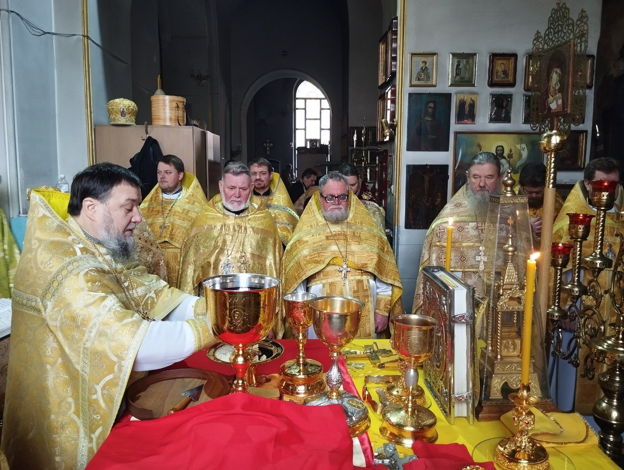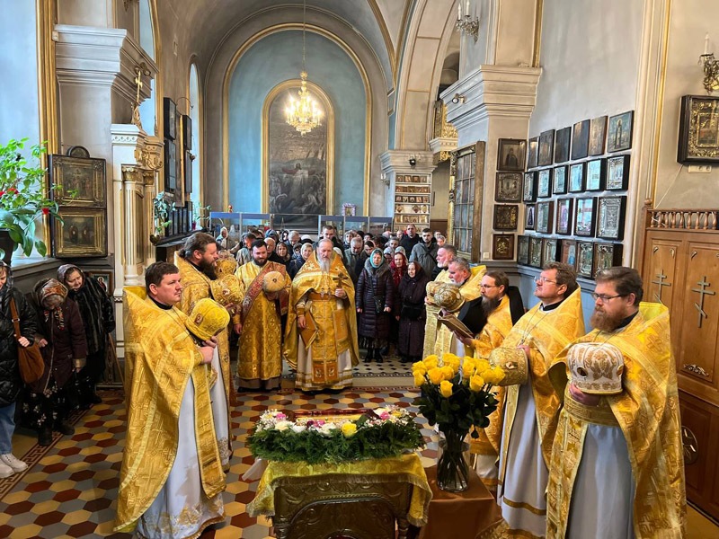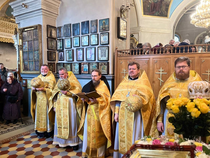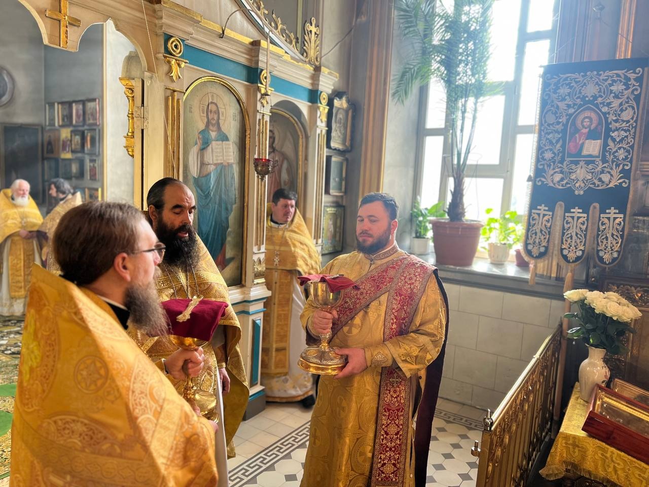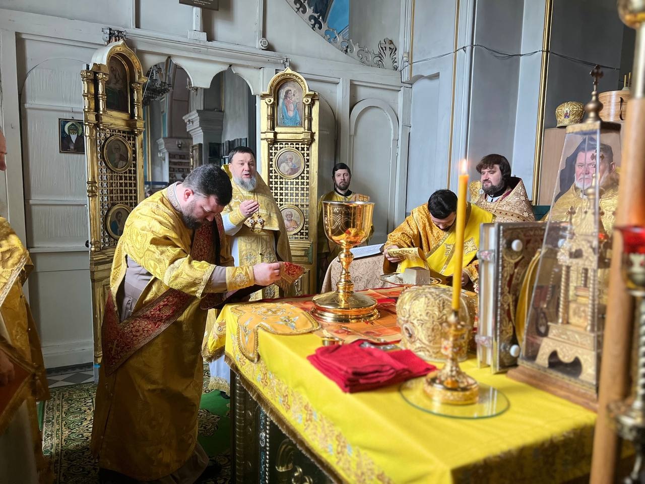 Під час Літургії підносилися особливі молитви за мир в Україні, за вимушених переселенців, біженців та всіх, хто виявляє до них милосердя і підтримку. Після запричасного вірша до вірян звернувся з повчальним словом архімандрит Антоній (Бондаренко), настоятель Пантелеймонівського храму м. Суми. У проповіді він наголосив на значенні духовного подвигу святителя Митрофана як прикладу непохитної віри, доброти та готовності служити людям.