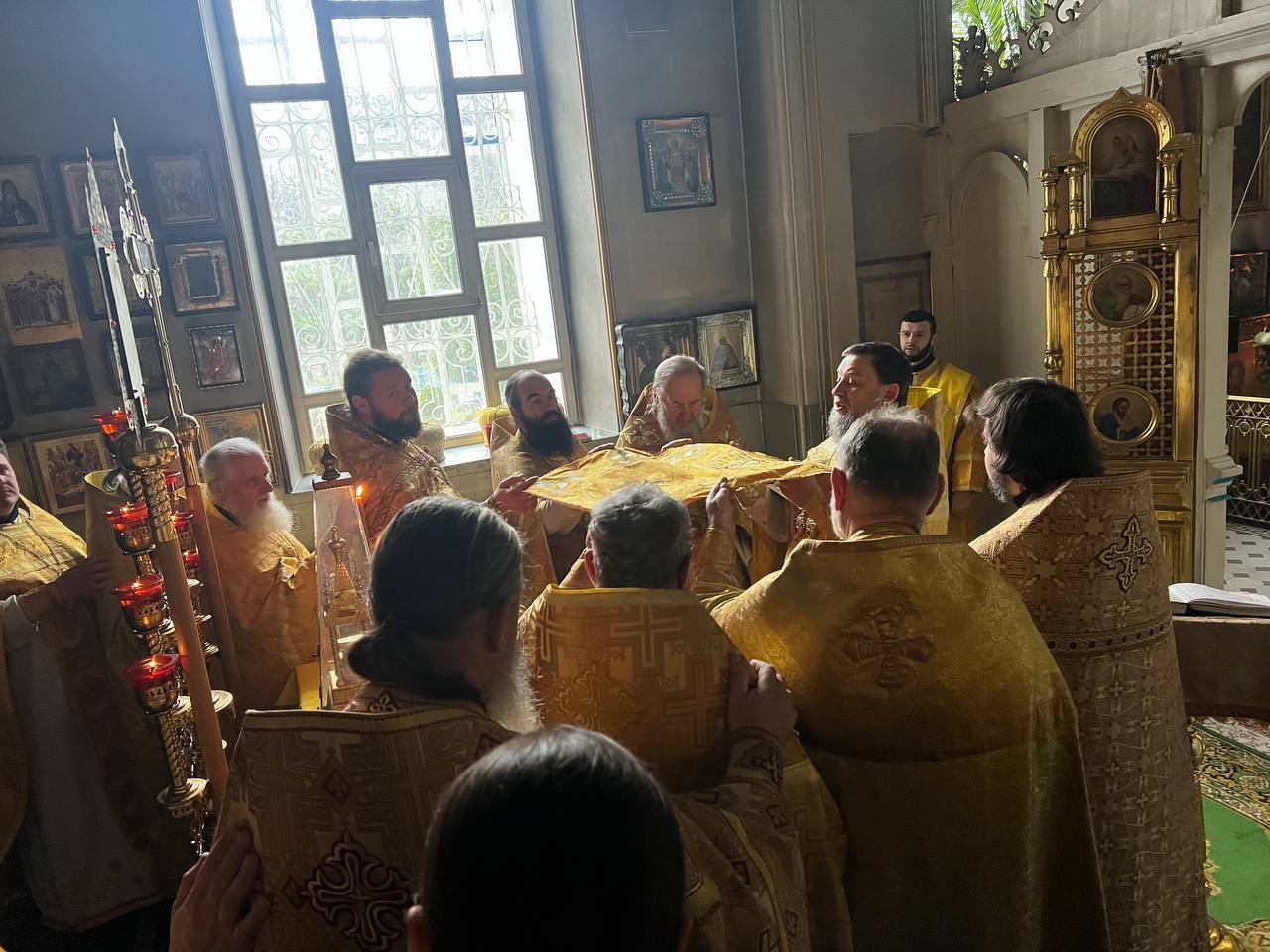 Після завершення Літургії духовенство та віряни звершили хресну ходу навколо храму з храмовою іконою святителя Митрофана Воронезького та святинями, що прибули на урочистості з інших парафій. Біля вівтарної частини храму були піднесені молитви за упокій схиархімандрита Миколая (Шульги), колишнього настоятеля храму, а також усіх спочилих настоятелів, священнослужителів та парафіян.